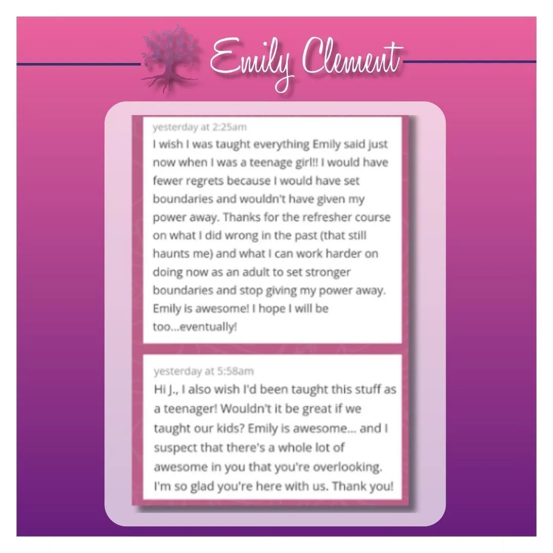 Continue your growth with lifetime access to digital trainings designed to keep your momentum alive — from confidence and boundaries to mindset and mastery.
