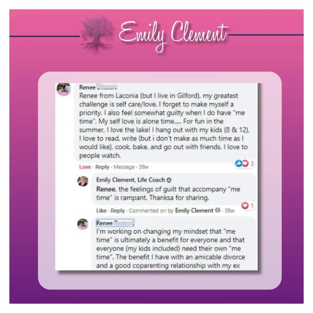 We're here to help. Simply email emily@emilyclementlifecoach.com and we'll get back to you.